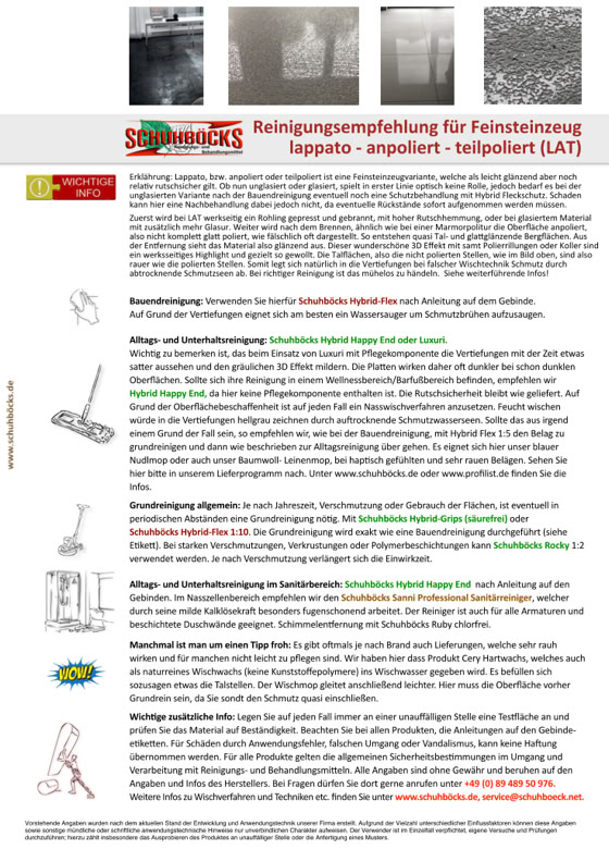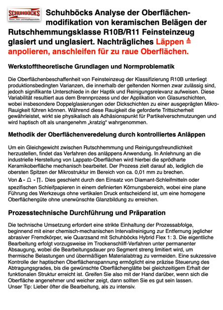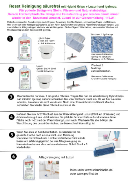 Einfache Bauendreinigung und Grundreinigung, leicht sauer für Fliesen und Feinsteinzeug. Wischverfahren Für Privatanwender gut geeignet.