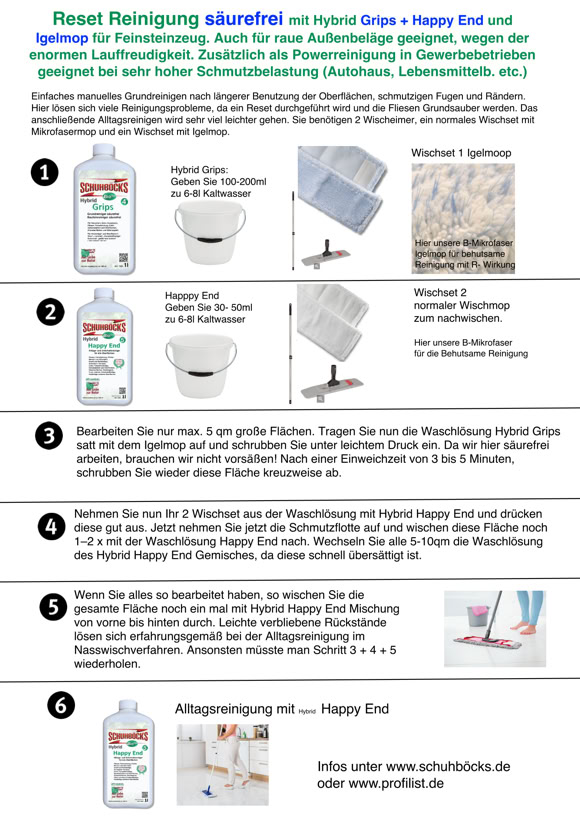 und Feinsteinzeug bei dunklen Fugen, fetthaltigeren Verschmutzungen. Für Privatanwender gut geeignet. Igelmop!
