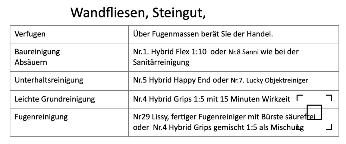 Reinigungs- und Behandlungsempfehlung